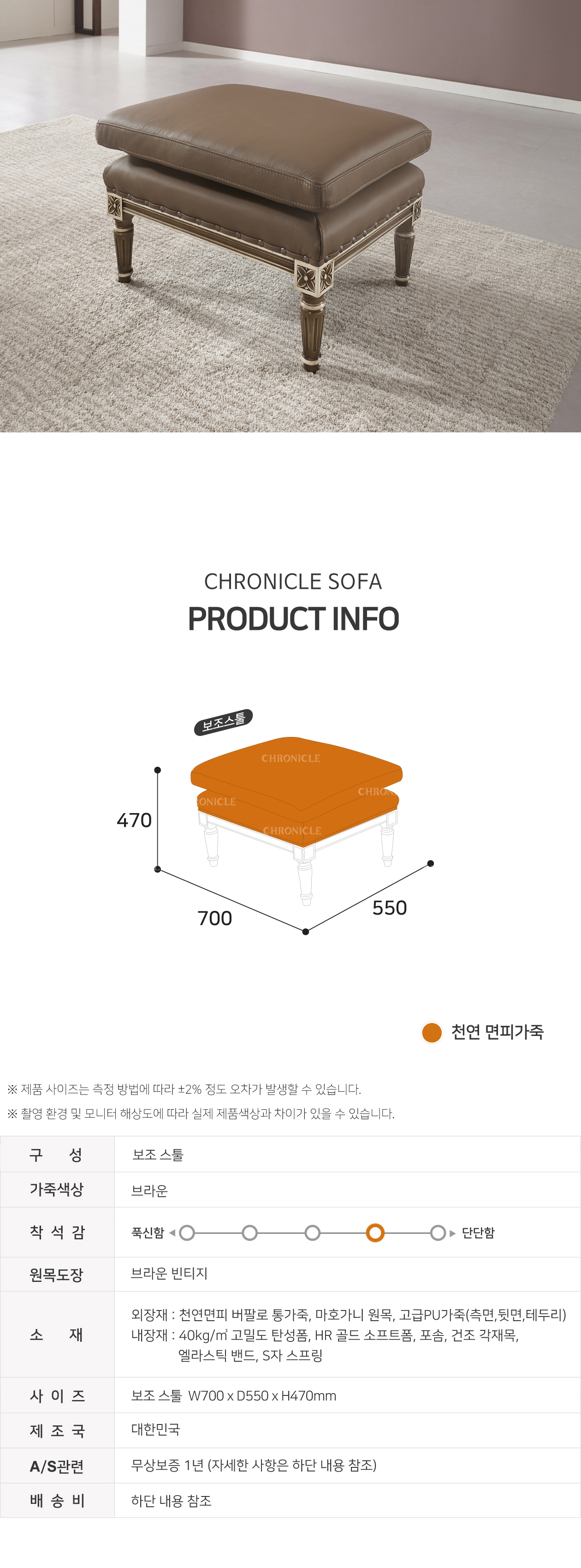 [직영생산 주문제작 - 단독특가] 면피가죽 보조스툴 ERC-7703