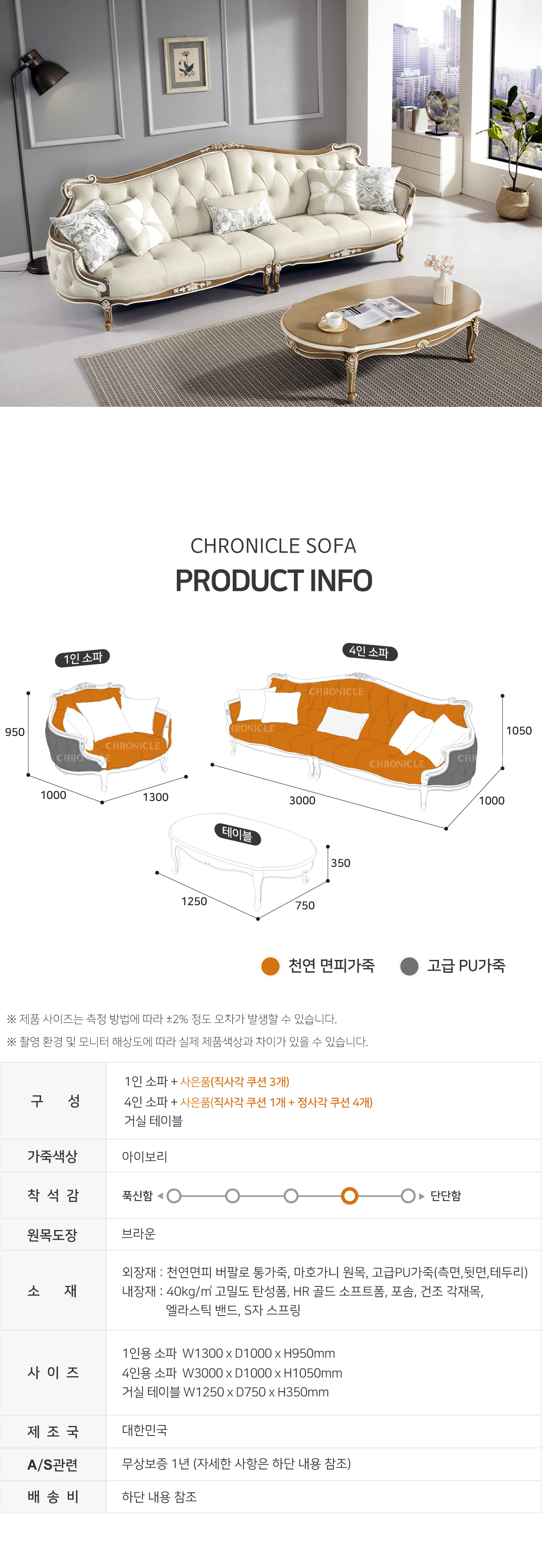 [직영생산 주문제작] 면피가죽 단추2단 테이블+1인+4인 소파세트 SFC-7701