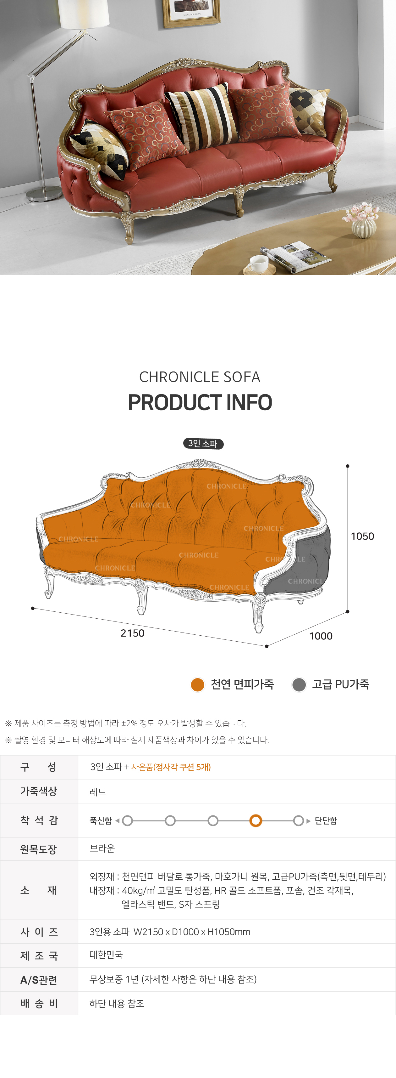 [직영생산 주문제작] 면피가죽 단추2단 3인용 쇼파 SFC-7704