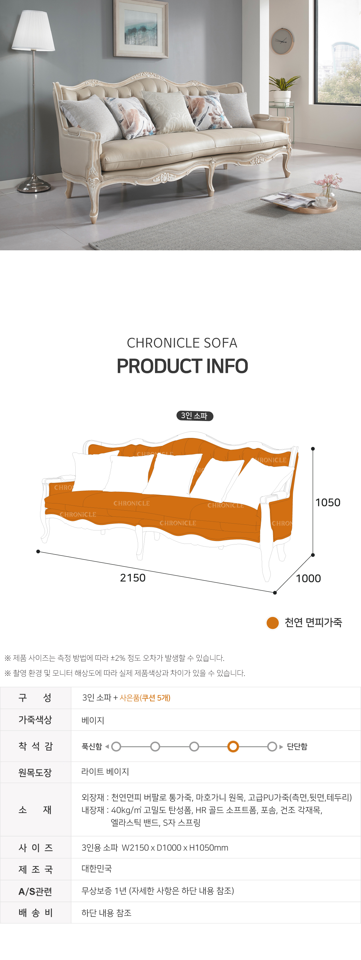 [직영생산 주문제작] 면피가죽 3인 쇼파 SFC-7732