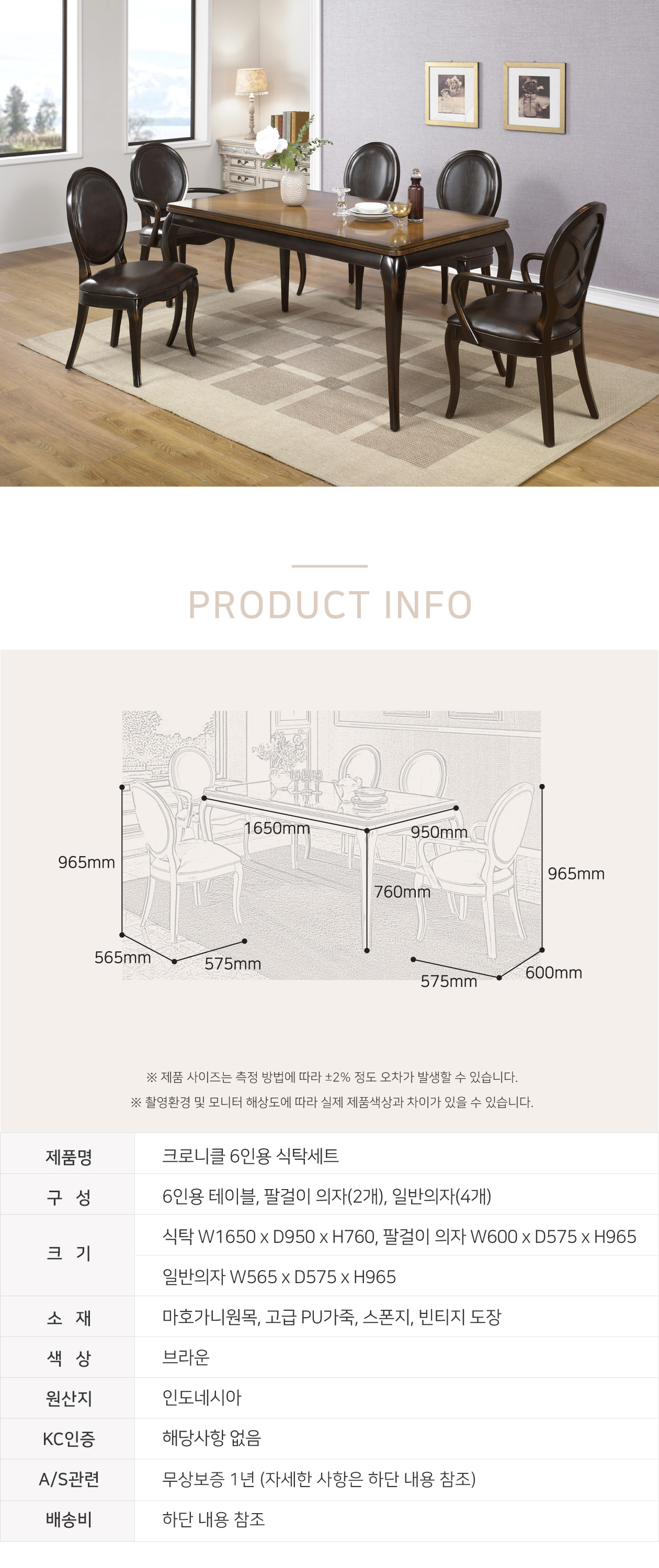 마호가니 1650 6인 식탁세트 WSC-0066