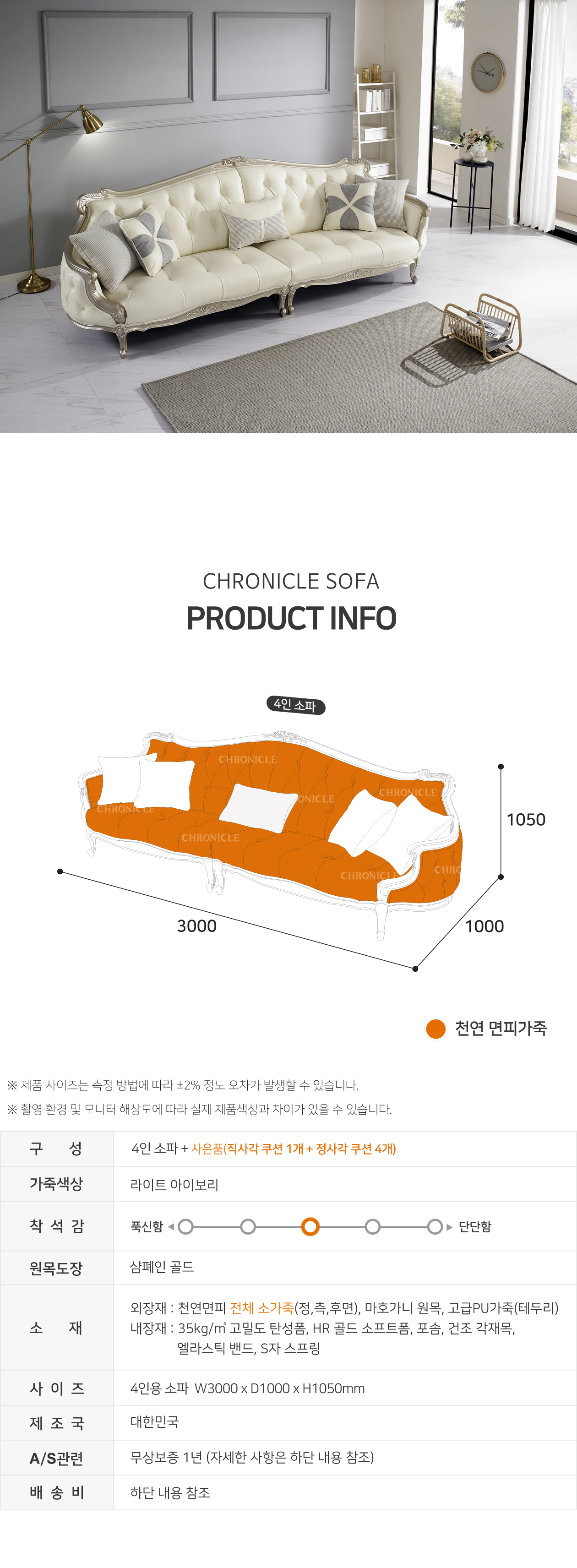 [직영생산 주문제작] 면피 전체 소가죽 단추2단 4인용 쇼파 SFC-7711