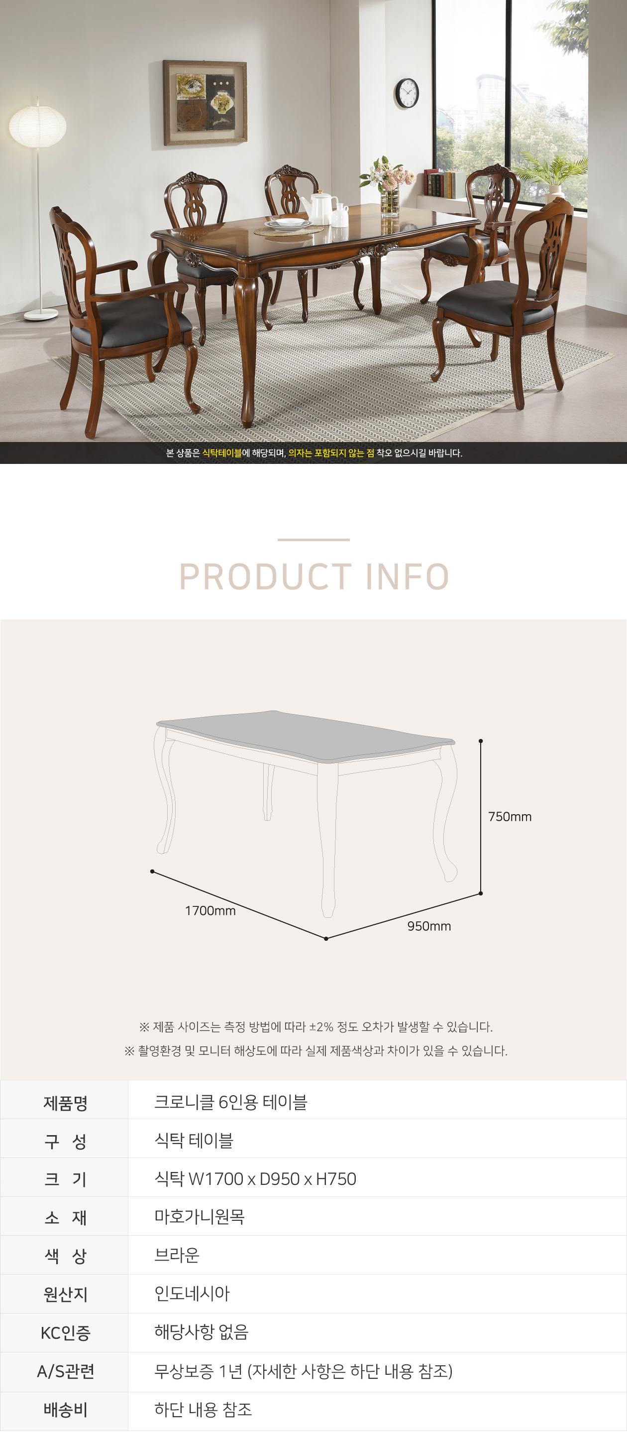 마호가니 1700 6인 식탁테이블 WSC-0083