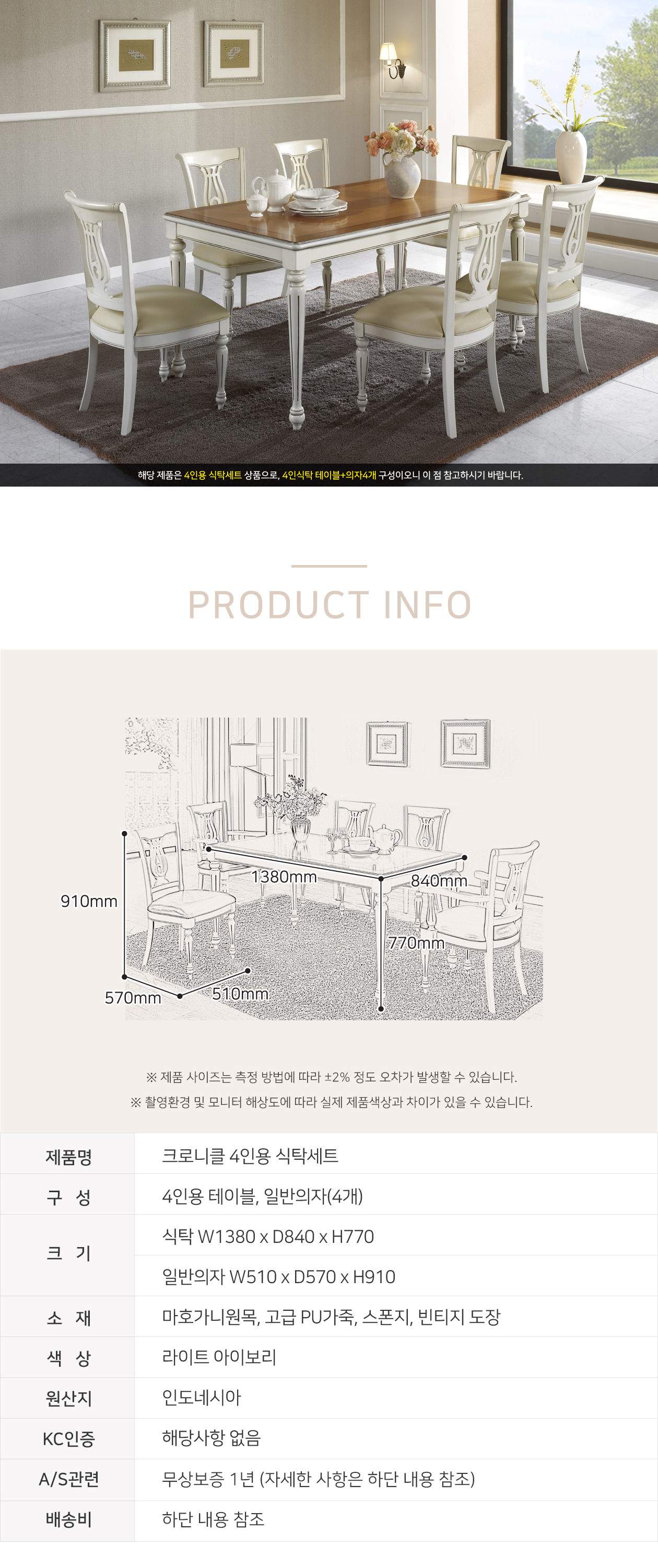 마호가니 1380 4인 식탁세트 WSC-0097
