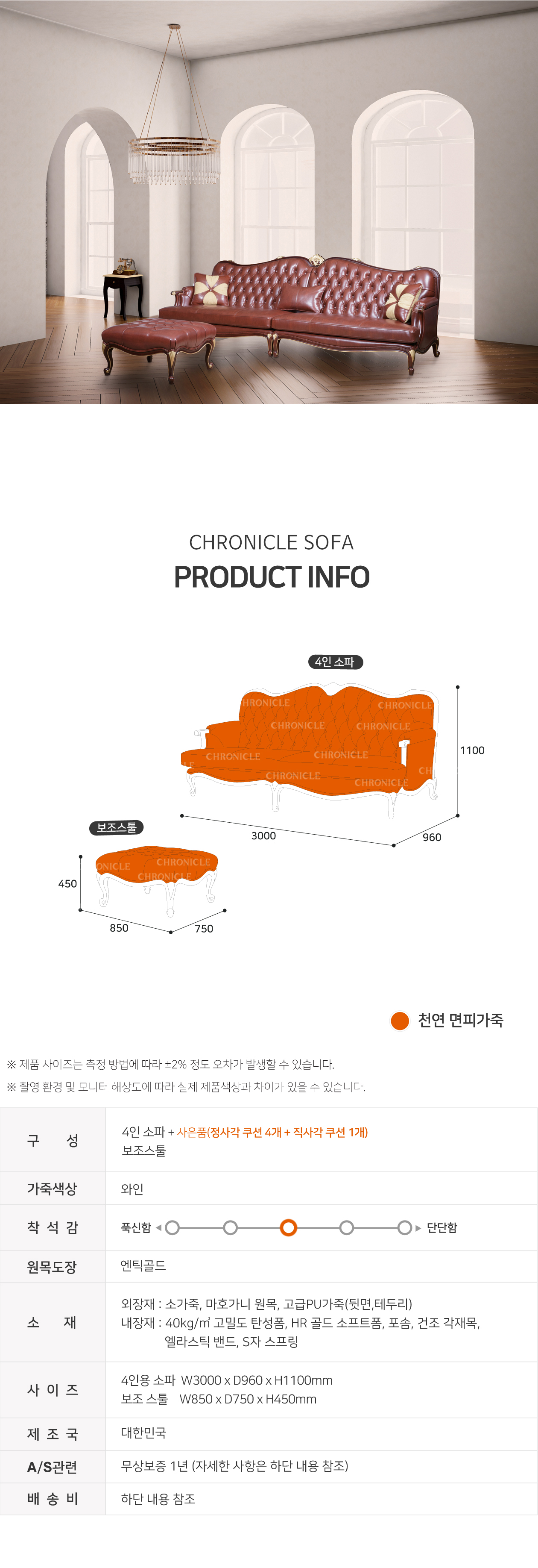 [직영생산 주문제작] 면피소가죽 4인소파+보조 ERC-7734